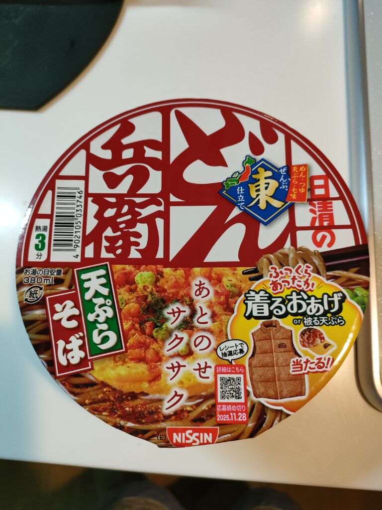 寒くなったから、やっと食べられる。この懸賞「着るおあげ」が欲しくて、珍しくカップ麺を3つも買ってあったのよ。