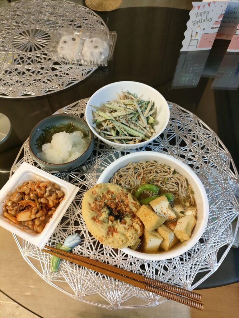 ゴボウときゅうりの粒マスタード和えに、めかぶおろし。
