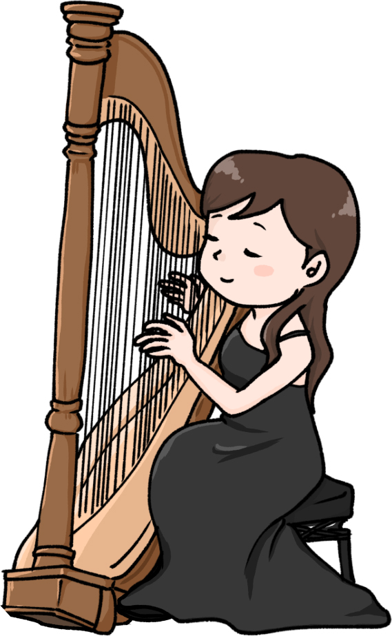 で、あたしのちょうど真後ろにハープさんが設置された。