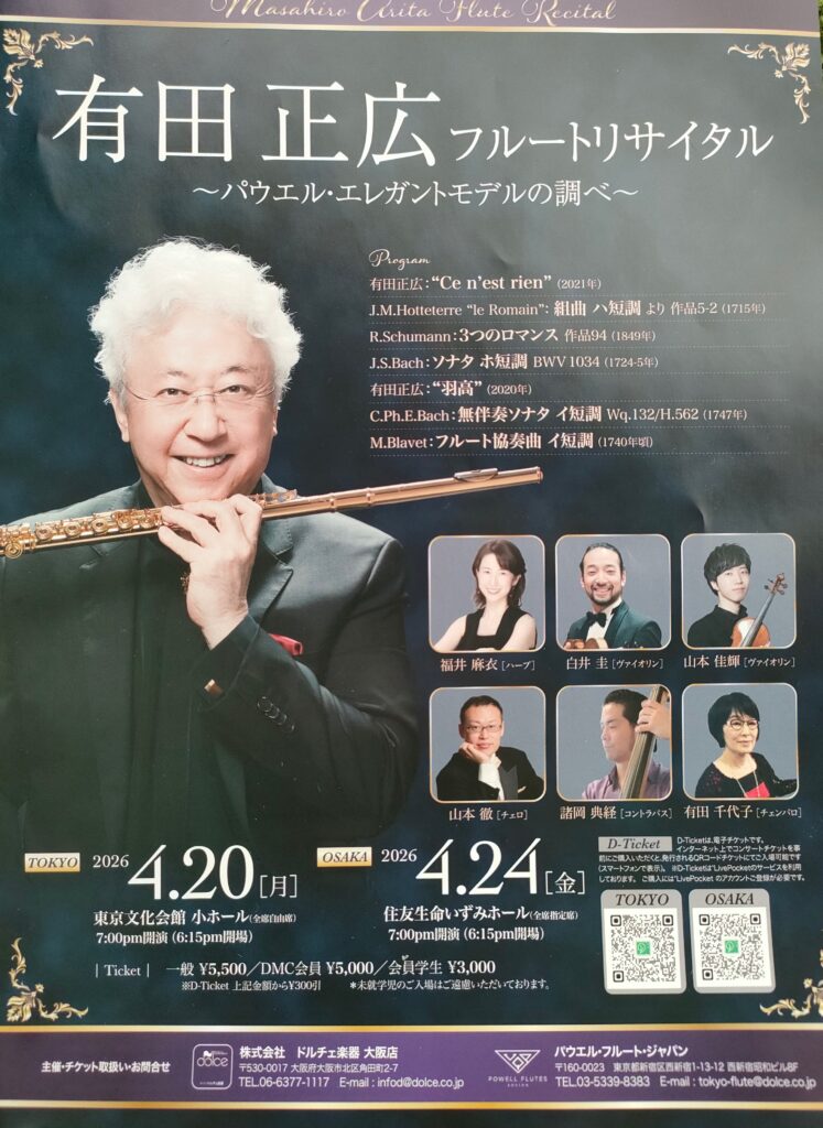 きのうは、有田正広さんのフルートリサイタルを聴いてきたよ。
