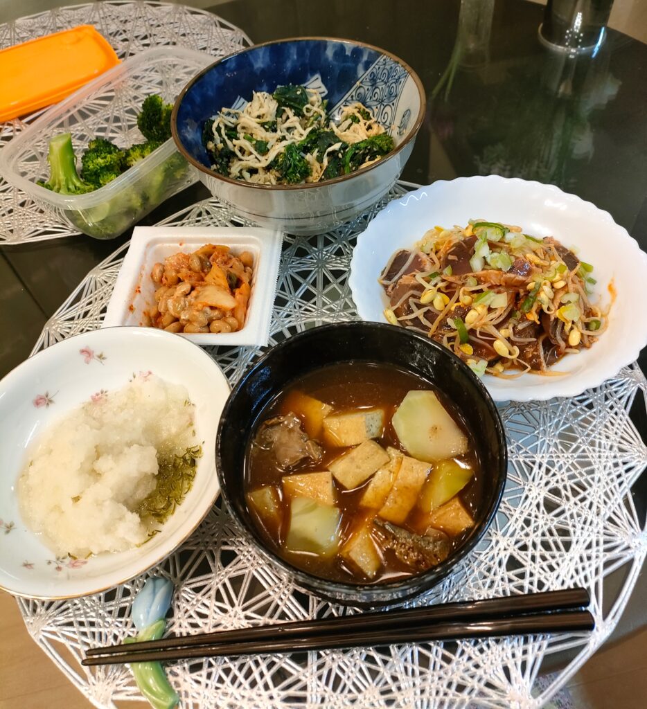 お酒が飲めない夜は基本的に、健康のため和食にしようと思ってる。きのうは和食+韓国風だったな。