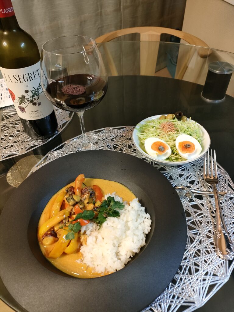 パプリカがせっかく2色あるのでレシピを探したら、タコを使うカレーが出てきた。