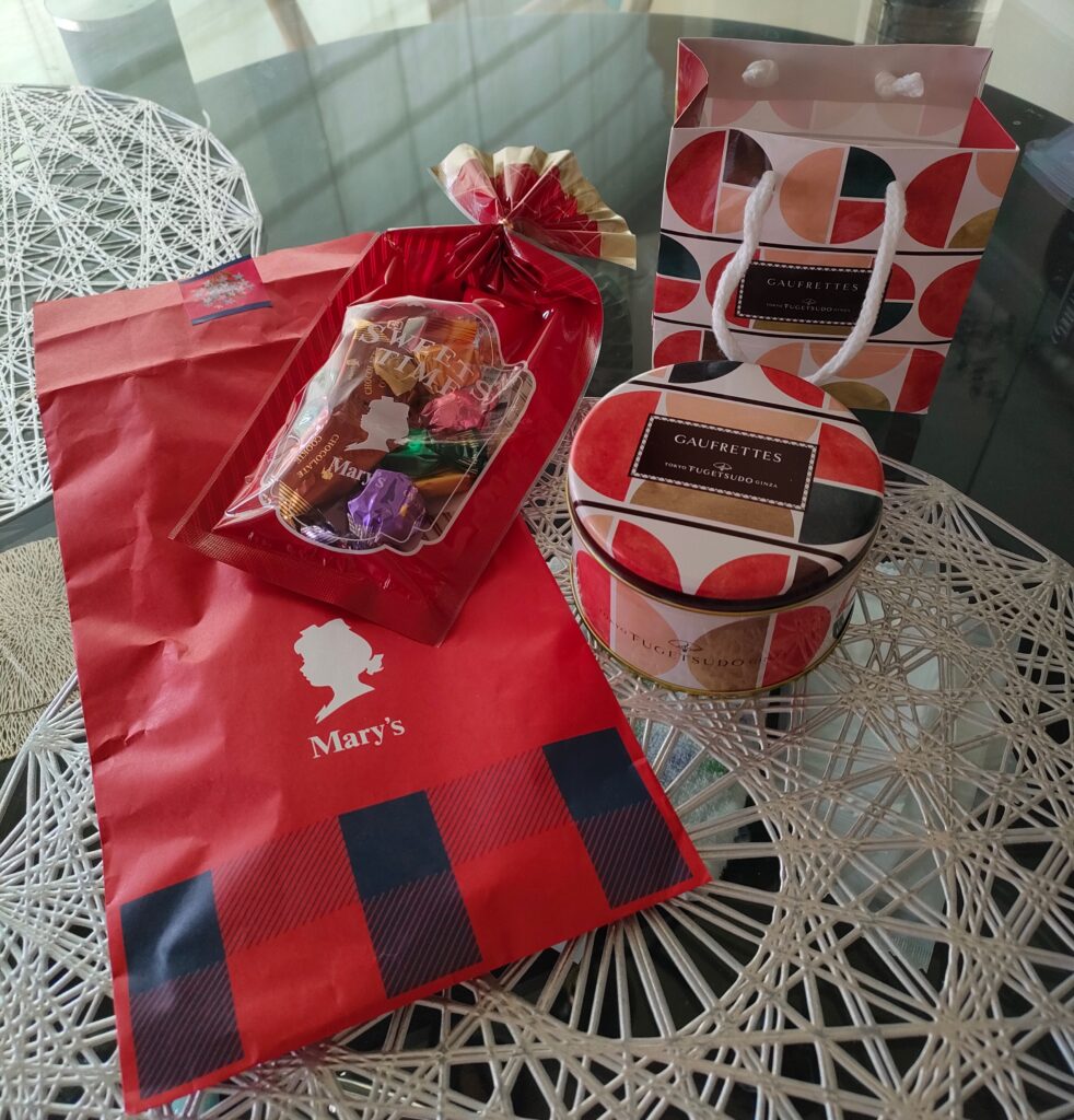 お菓子やお花の小さめな紙袋をプレゼントをいっぱいもらって、N井さんすごいなー。