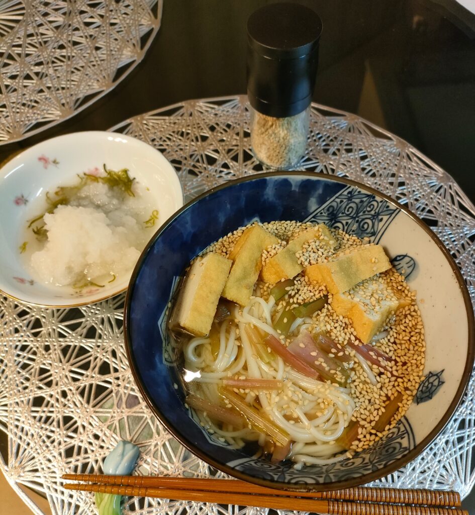 うどんのつゆもあったんだ。夏に元部長からいただいたうどんに付いてたのが柚子入りで。