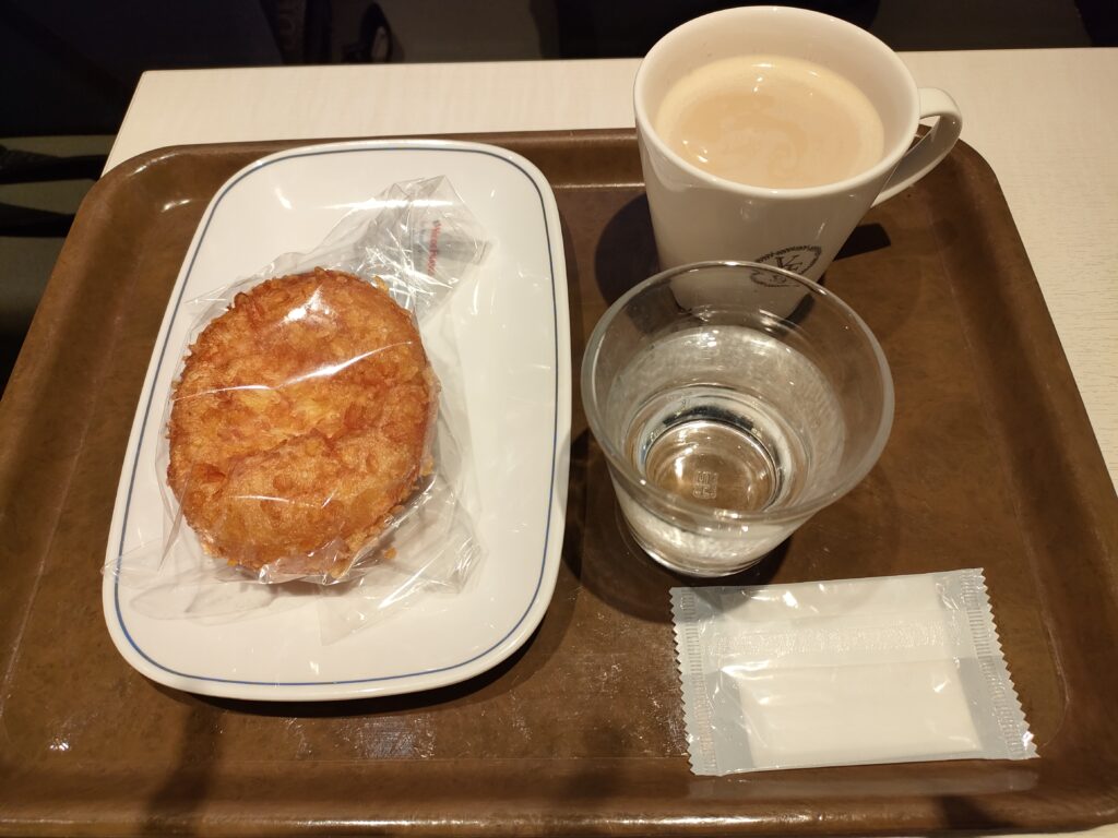 この日の夕食。ヴィドフランスのカレーパンとカフェオレ。