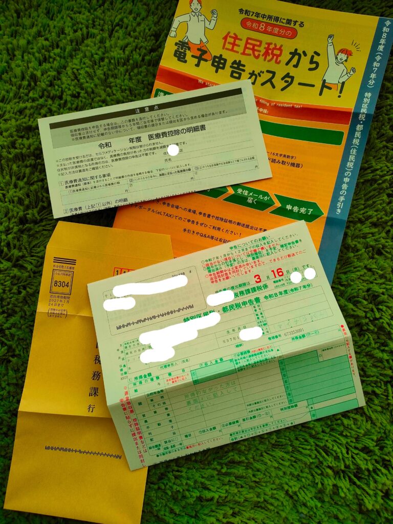 親切なことに、医療費控除明細書や返信用封筒(切手不要)まで同封されてるよ。