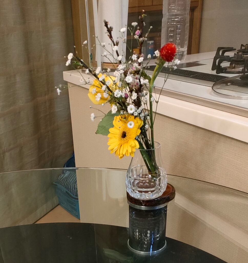 ガーベラだけ丈を詰めて。ガーベラの茎って、すぐ弱るよねー。