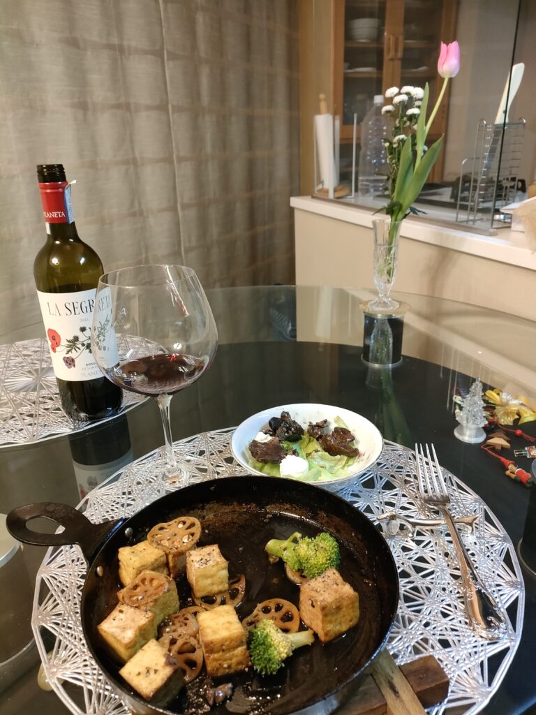 ワインのための糖質オフレシピ、元は鶏モモだけど厚揚げで作ってみた。バター、しょうゆ酒みりんと酢、塩こしょうとにんにく。