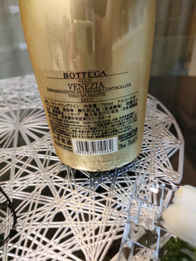高いわりに、炭酸ガス注入で発泡させてるのねー。ま、単に成金趣味に浸るために買ったんだからいいわ。