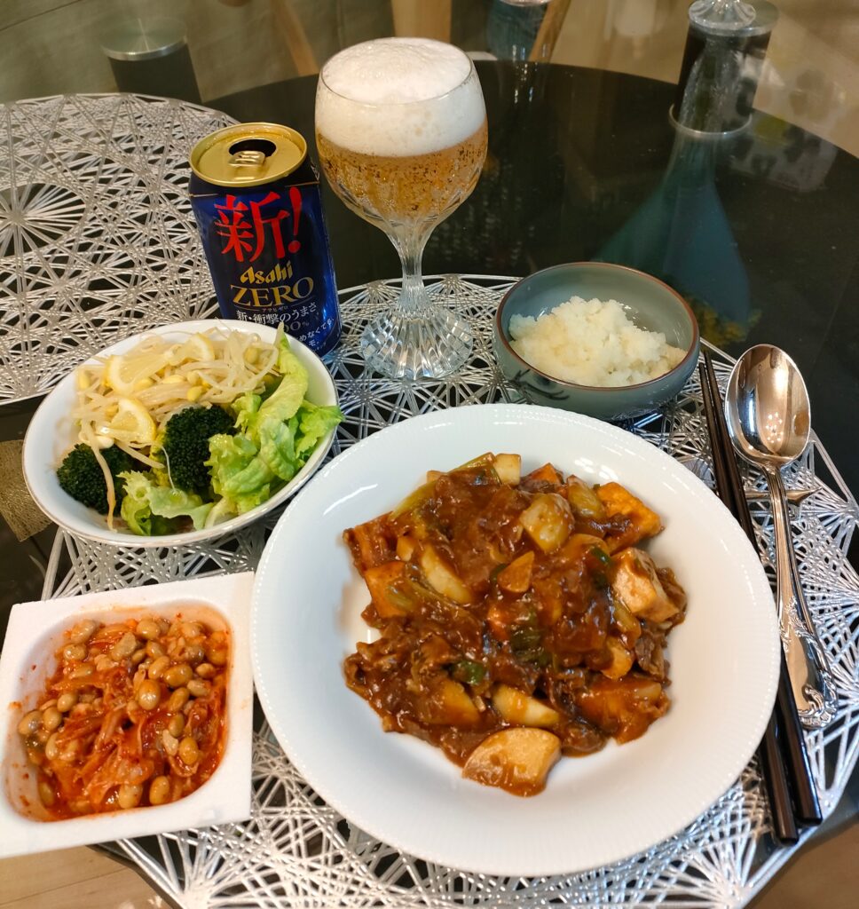 かぶが3個もあるんで、大きめのを1個選んで、厚揚げも足してマーボー風にするつもりが。
