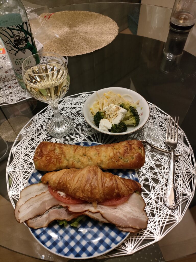 思いがけず帰りが遅くなったので、スーパーで調達の中食。枝豆パンは枝豆がみじん切りすぎてとても残念。クロワッサンサンドのベーコンが、びっくりするほどおいしかった!