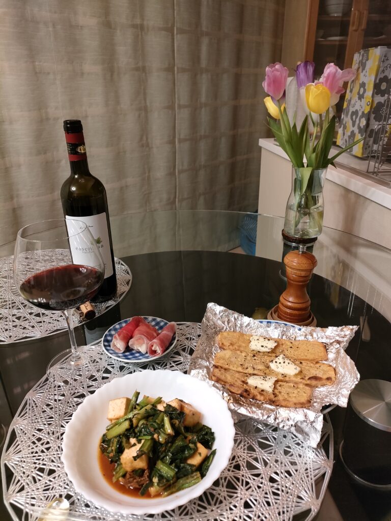 これだけじゃナンなので、ワインに合うか微妙だけど厚揚げと小松菜で回鍋肉。