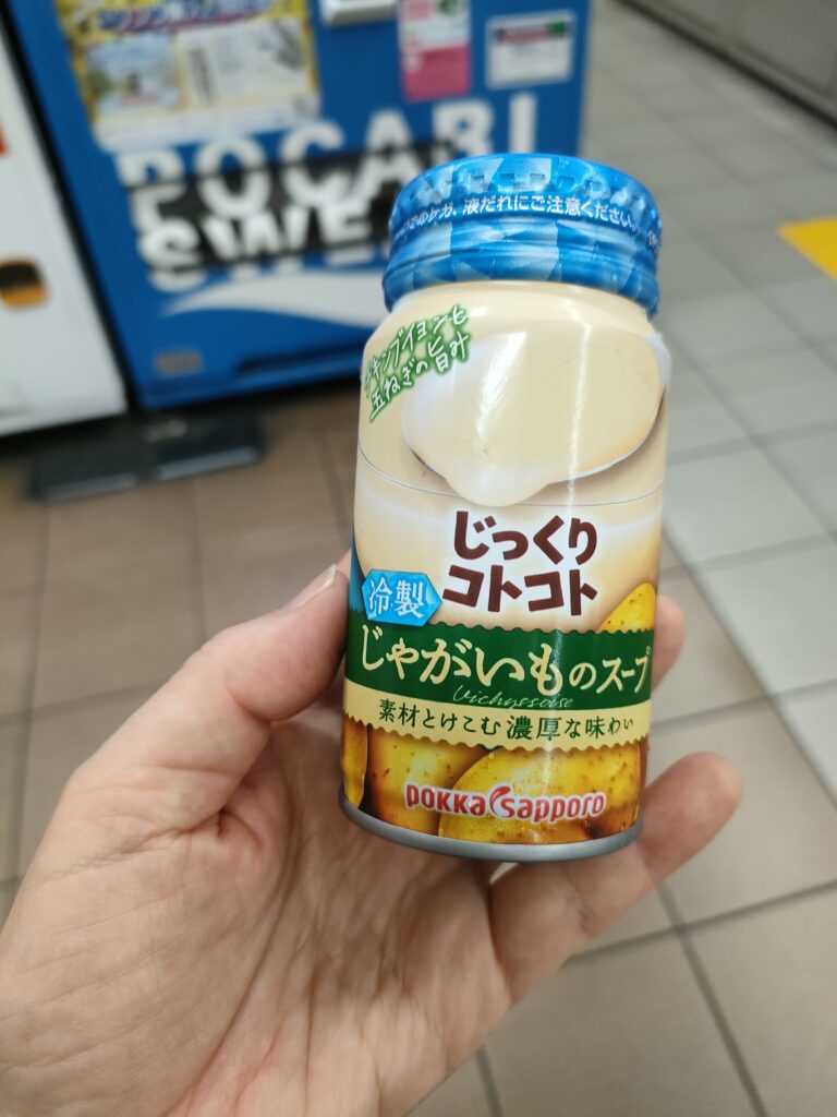 行く途中の乗り換え駅の自販機で、じゃがいものスープを買った。