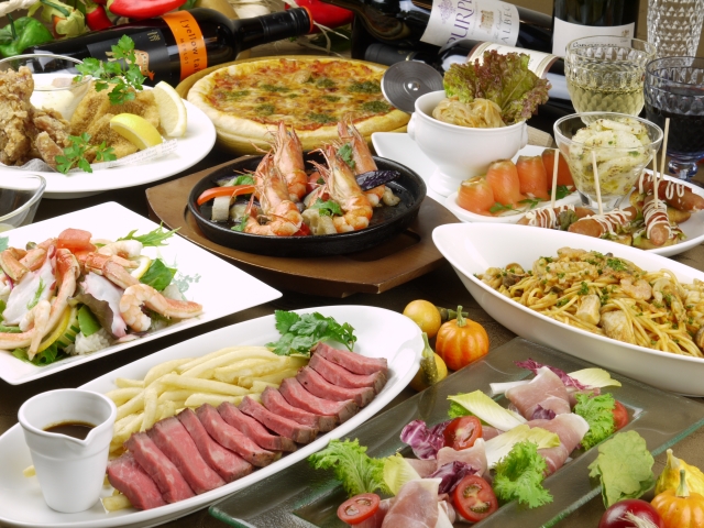 ピザ、キッシュ、ハモンセラーノやおつまみチーズ、マックフライポテトなどどんどん出てくる。