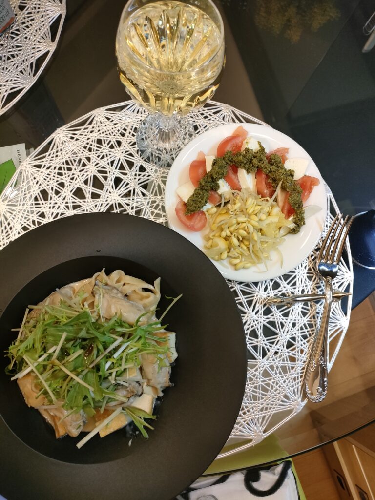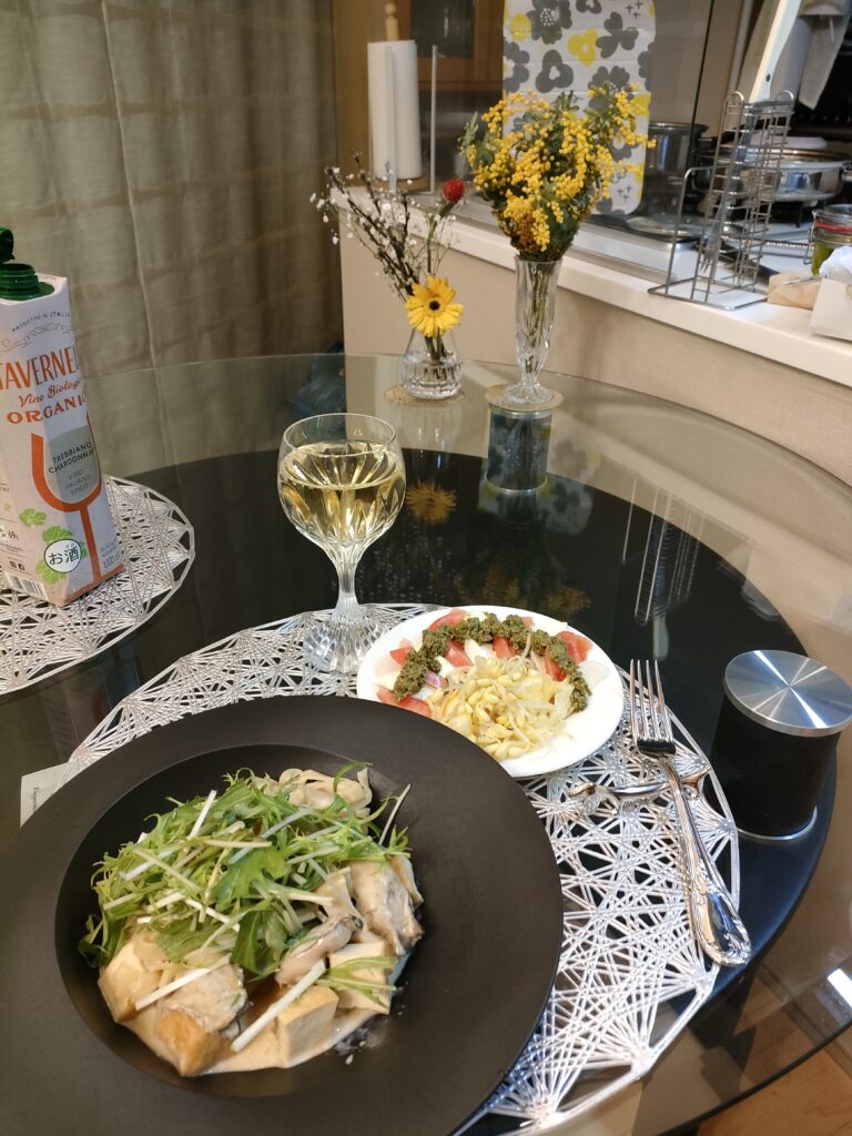 夕飯は、牡蠣と水菜と厚揚げのクリームパスタ。先月も同じレシピで作ったけど、そのときは厚揚げは入れなかった。