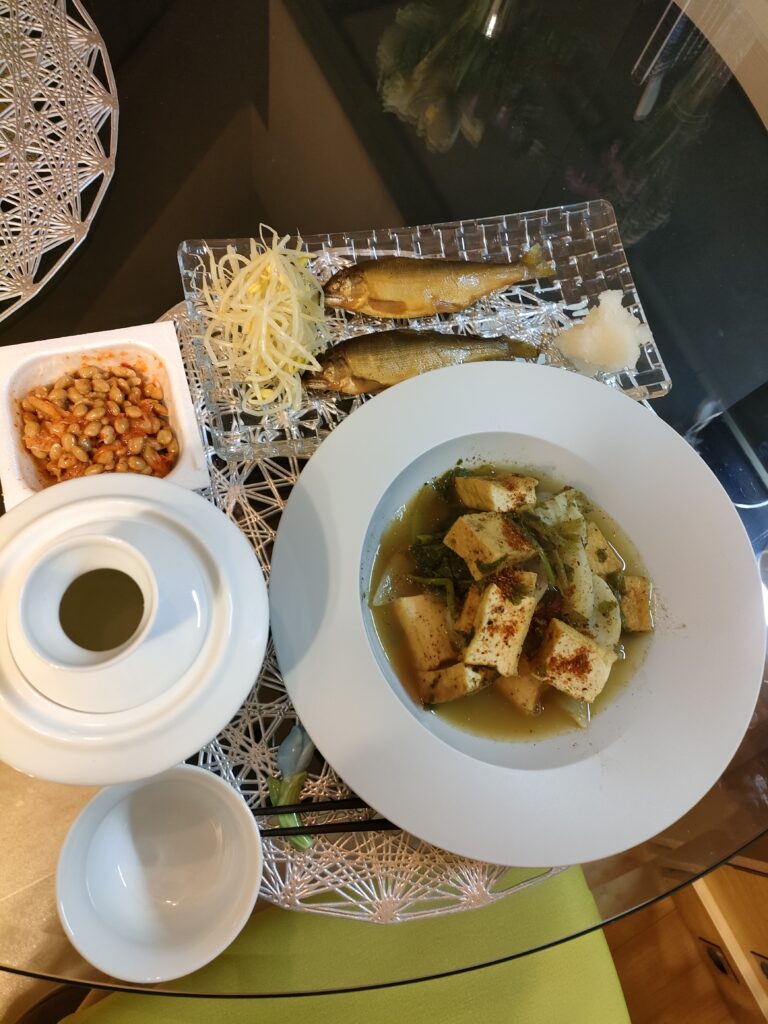 もうちょっとタンパク質が欲しい。鮎の姿煮のレトルトなんてあったから出してみた。アタマから丸かじりするのは抵抗があるけど、カルシウム補給だから頑張って食べる。