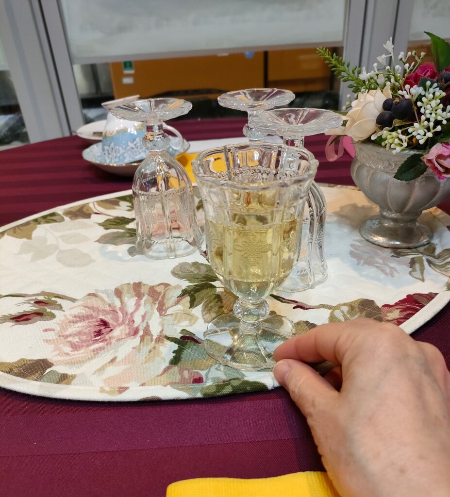 飲み物は何にしましょう、と聞かれ。コーヒー紅茶の他にワインもいただけるんだって。