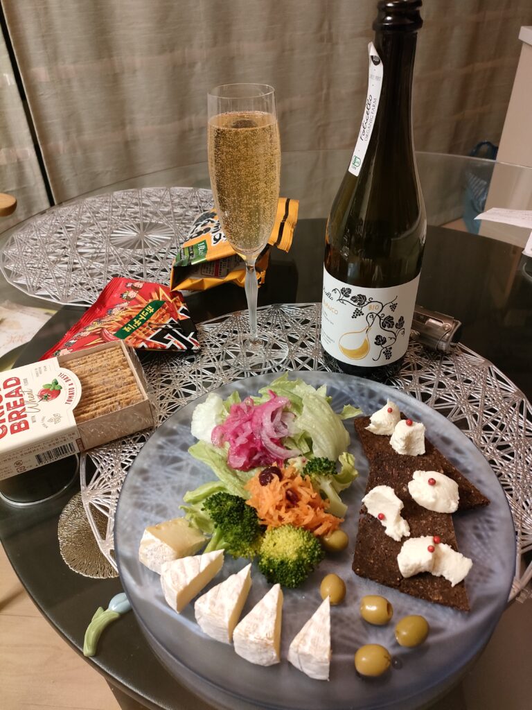 きのうはね。ワインを楽しもうと最初から考えてて、帰り道に成城石井でモンドールチーズを買って帰る予定だったのよ。