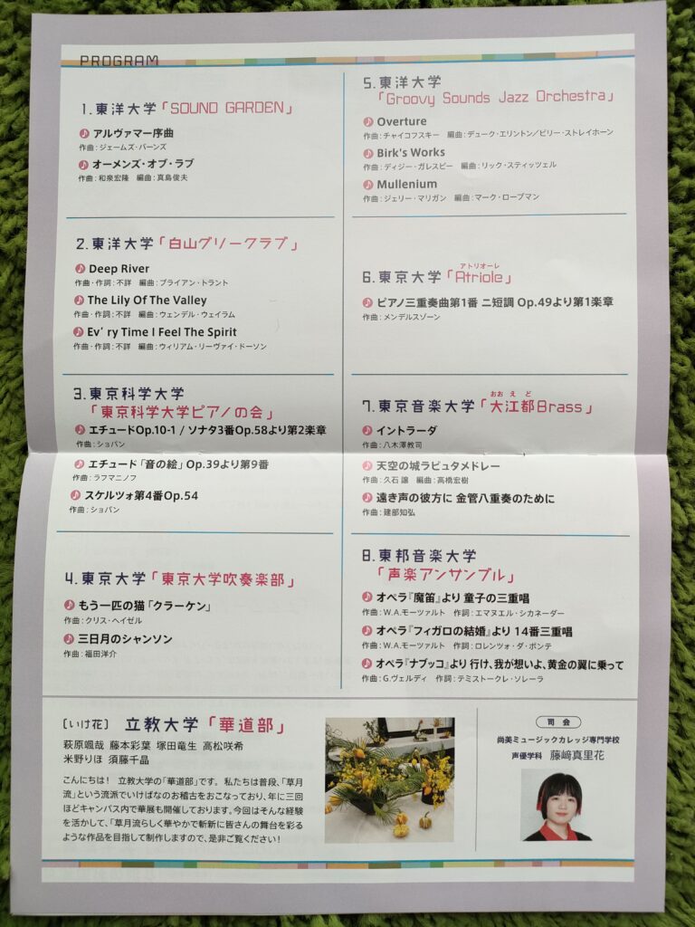 東大あり、音大あり。室内楽あり、ジャズあり声楽あり。
