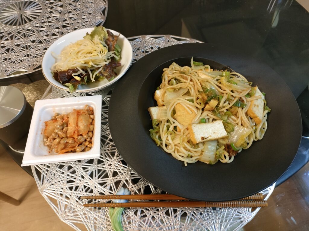 きのうは室内楽から帰ってきて、夜にも出かけたのでね。その合間に野菜と厚揚げを切ってから出かけたので、簡単に整ったよ。