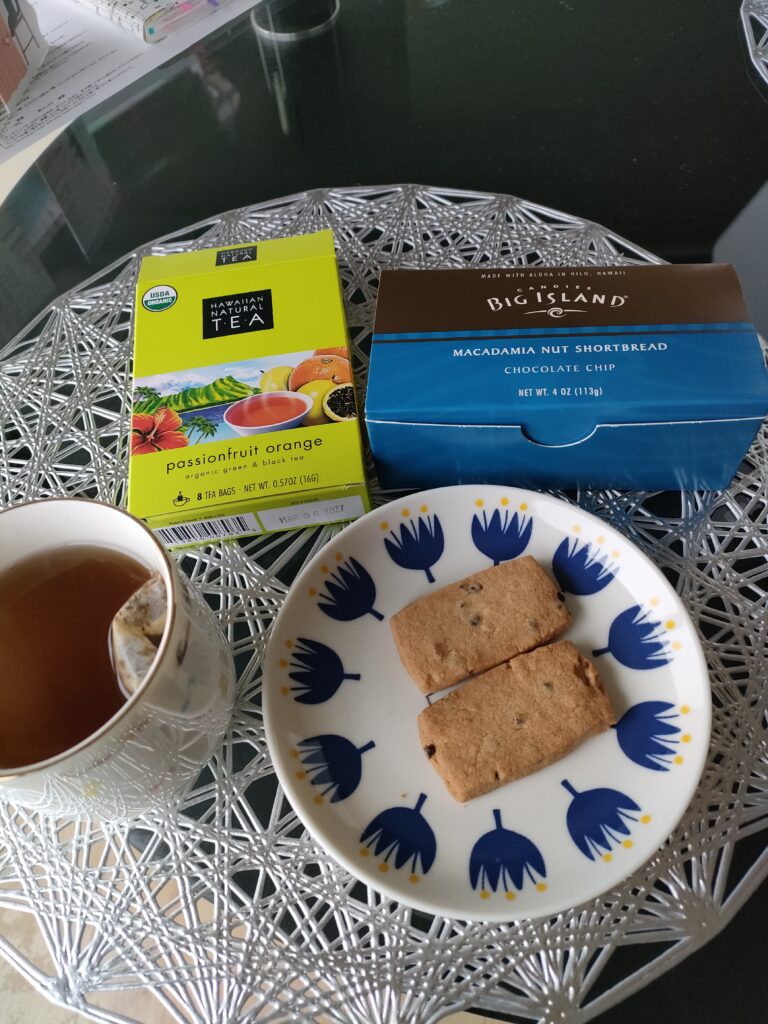 S子からもらったハワイ土産の紅茶とクッキーで目を覚まして、写真を撮ってS子に送ったよ。
