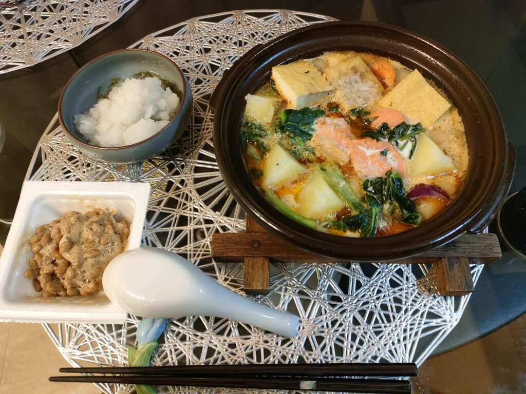 ゆうべは「鮭とジャガイモの豆乳チゲ」にしたよ。アサヒビールさんのレシピ。