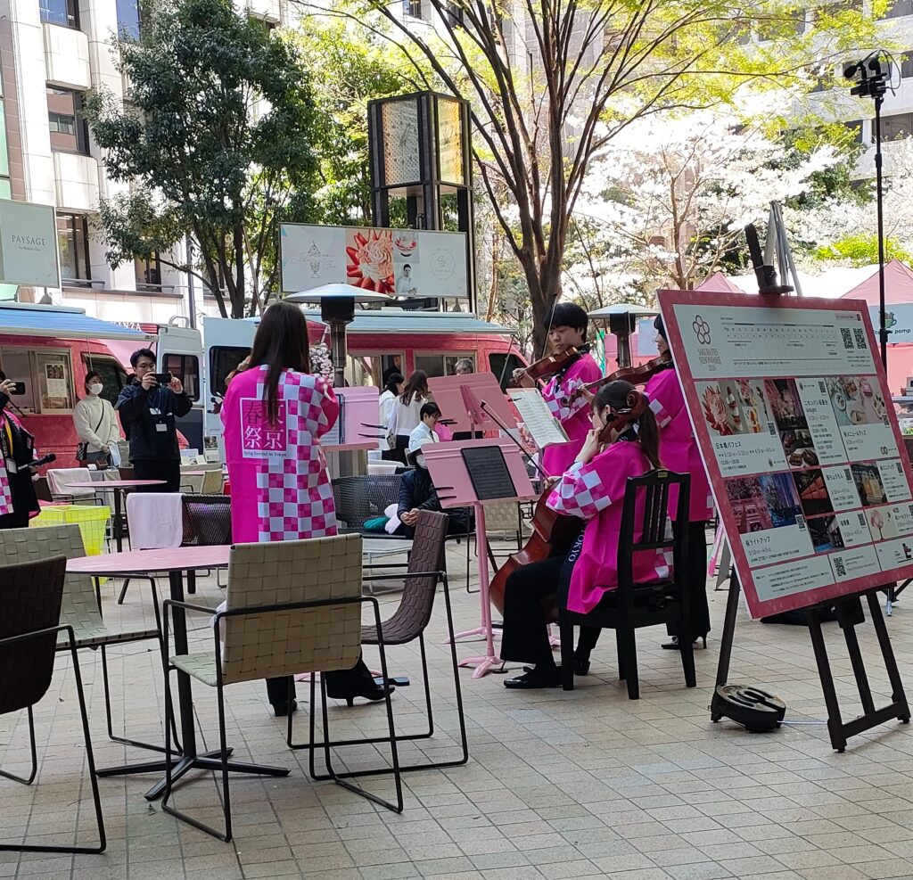 日本橋室町三井タワー、COREDO室町テラスの大屋根広場で、弦楽四重奏が行われる。