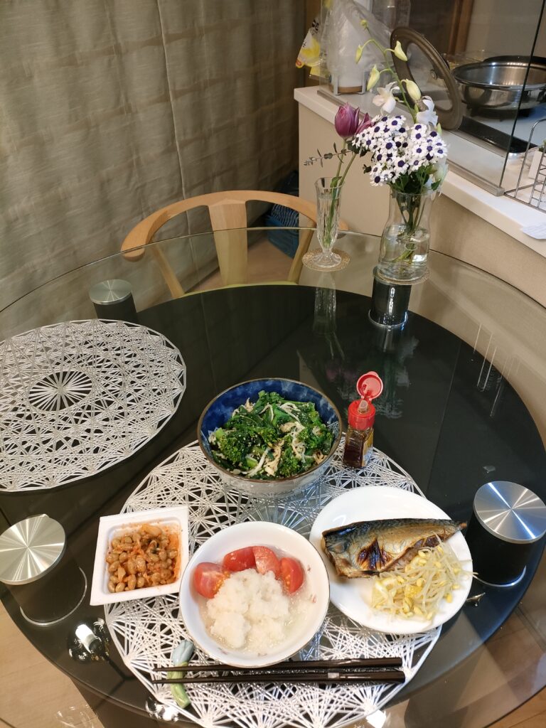 最初からね、夕飯は鯖を焼くだけの簡単にしようと思ってたの。あとは、水曜に届いた菜の花がしおれないうちにやっつけないと。