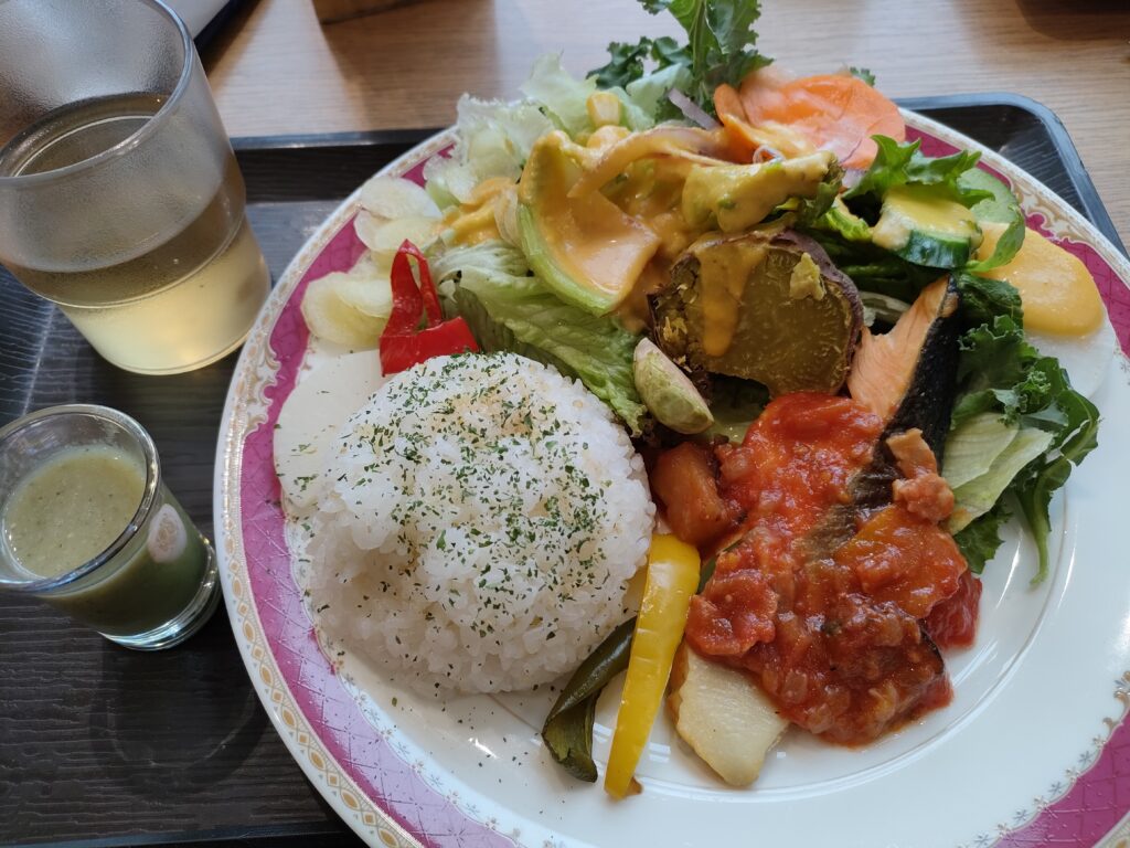 練習後のランチは「本日のプレート」サーモンのロースト、だっけな?受け取って、思わず「サーモンはどこ?」と目を皿のようにして探しちゃった。