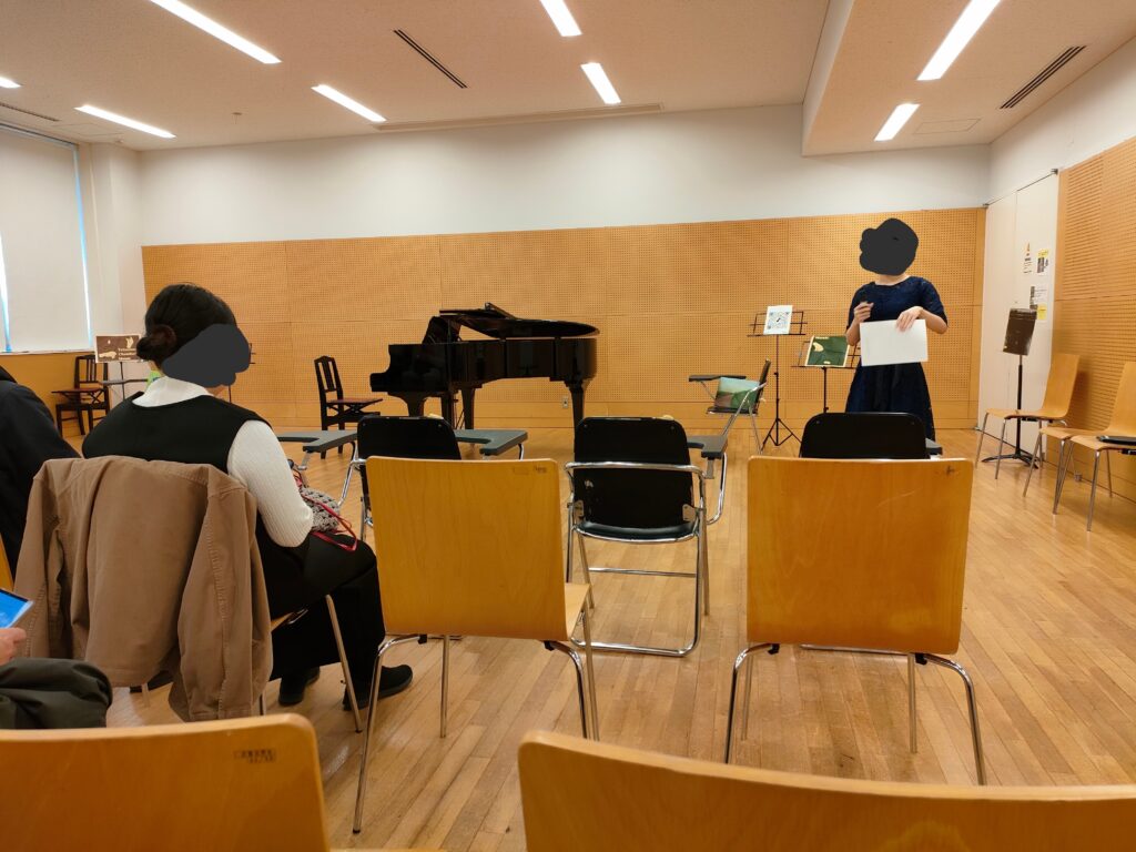 惜しい、目の前で「音楽実習室」と扉が閉まって、1曲めが聴けなかった。