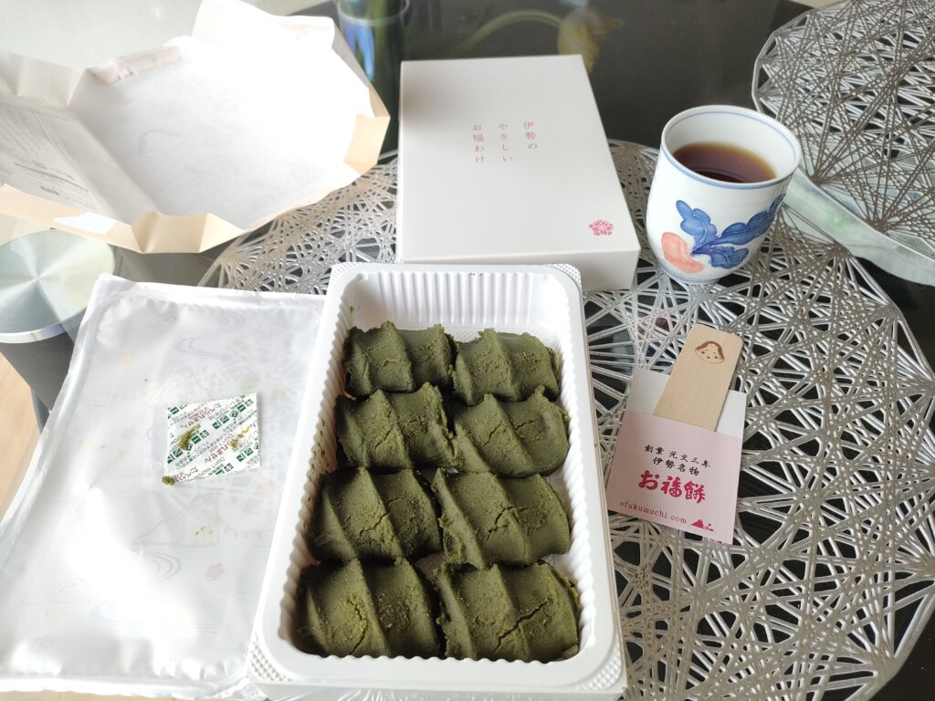 列に並んだら、途中に並べてあったお福餅が気になった。抹茶味、好きなんだ。普通の赤福も好きだけど。