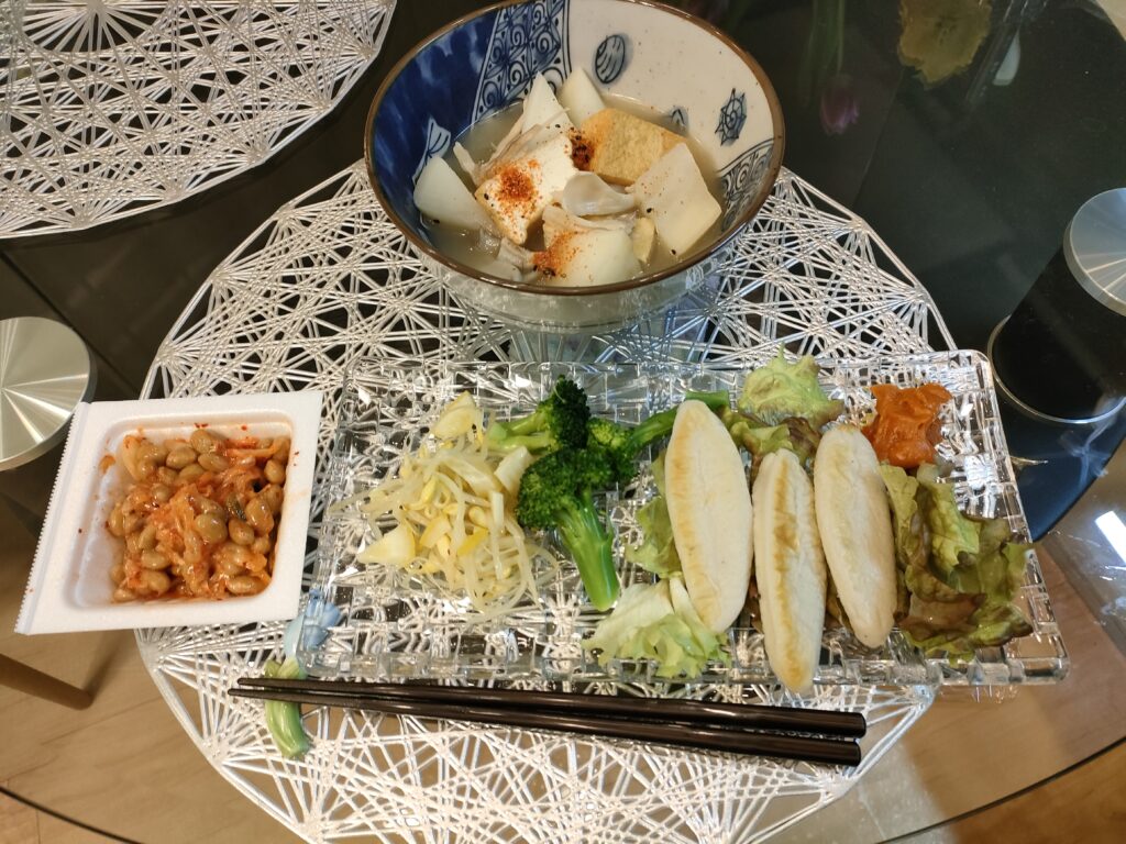 メインは聖護院大根と厚揚げと舞茸の煮物。この倍量つくったけどやっぱり食べきれず。
