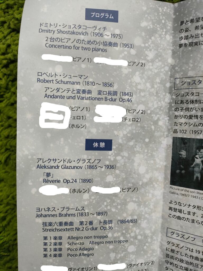 で、最後がお待ちかねK村さんがファーストバイオリンを弾く、ブラームス弦楽六重奏曲第2番。