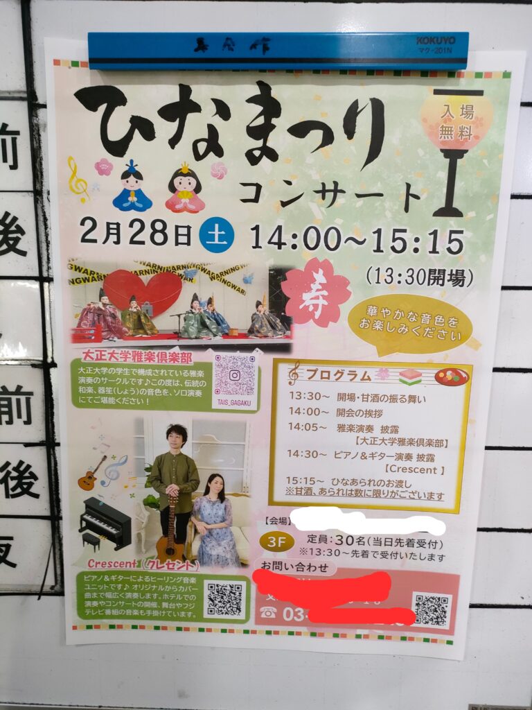 きのうは公民館で雅楽やギターのひなまつりコンサートがあって、直前まで行こうとしてたのに。
