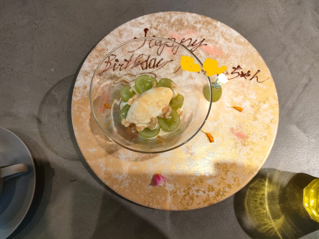 こちらこそ、大変申し訳ない。でも、生まれて初めてシャインマスカットを食べられて、加えてチーズクリームやキラキラゼリーなどがすべて美味しくて。