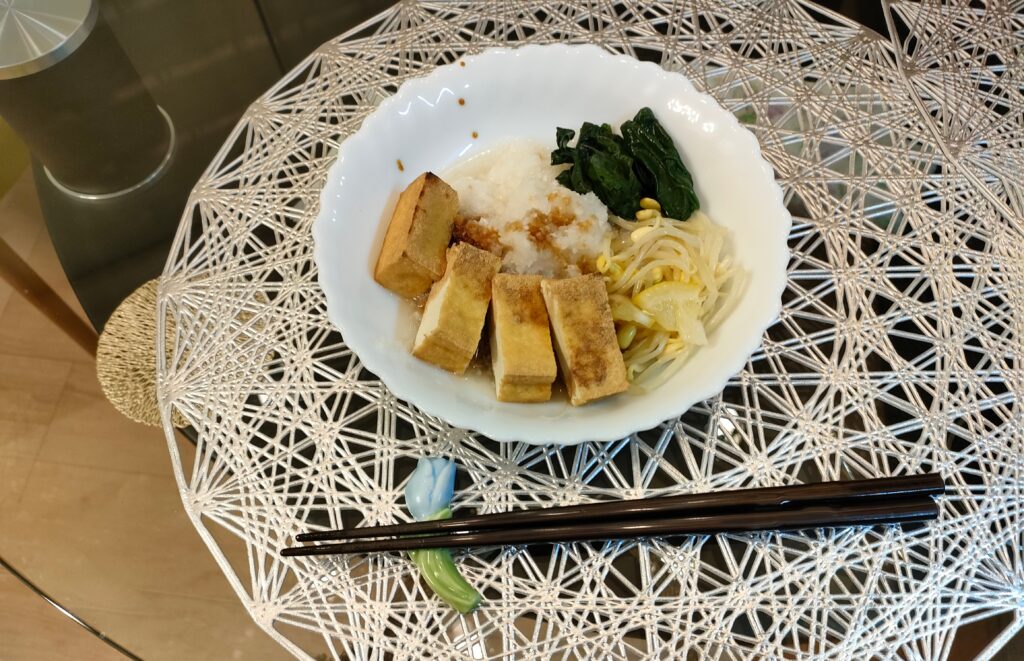 厚揚げがあると言ったら「焼いて大根おろしを付けるといいわね」と言ってくれたのでその通りに。