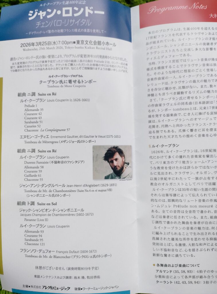 プログラムの中にクープランのアルマンド3曲あるけど、まあアルマンドって舞曲の名前でしかないから、チェンバロ曲だけでも100曲以上はあるだろうな。