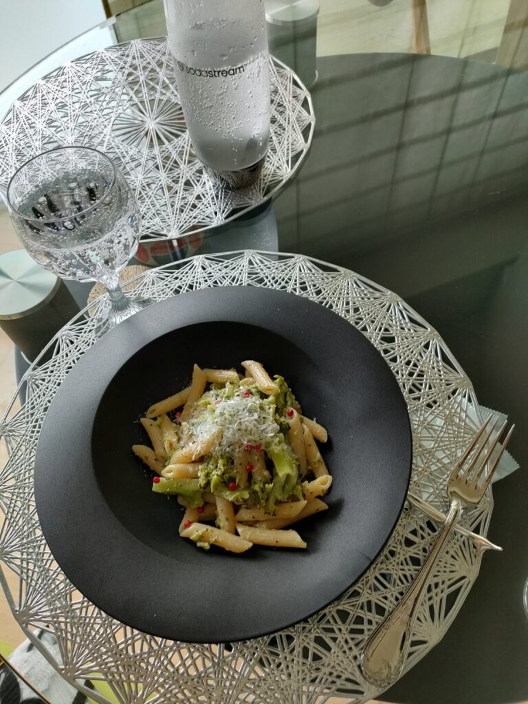 きのうは、珍しく昼ご飯をしっかりめに。ブロッコリーの茹で方をクッタクタにしちゃったので、早く食べないとすぐ傷みそう。つぶしてクリームパスタにしたよ。