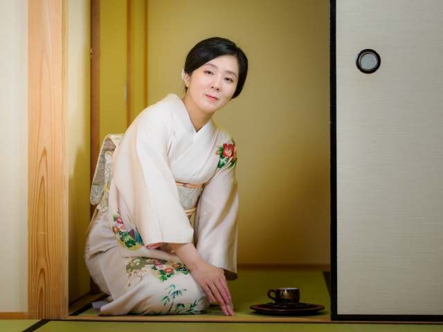 二番目、三番目のお客はこぶしを畳について、亭主ににじり寄ってお茶を受け取るの。