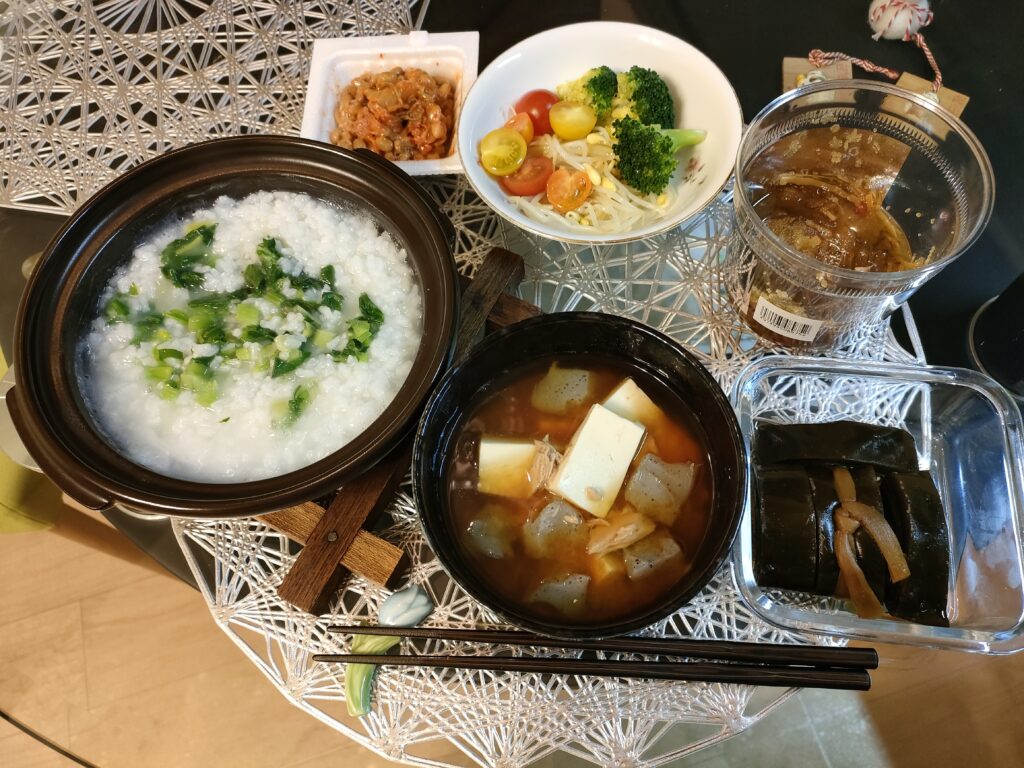 七草がゆならぬ四草がゆ。大根かぶレタス小松菜。あっ、キャベツも入れればよかった!(それでいいのか?)